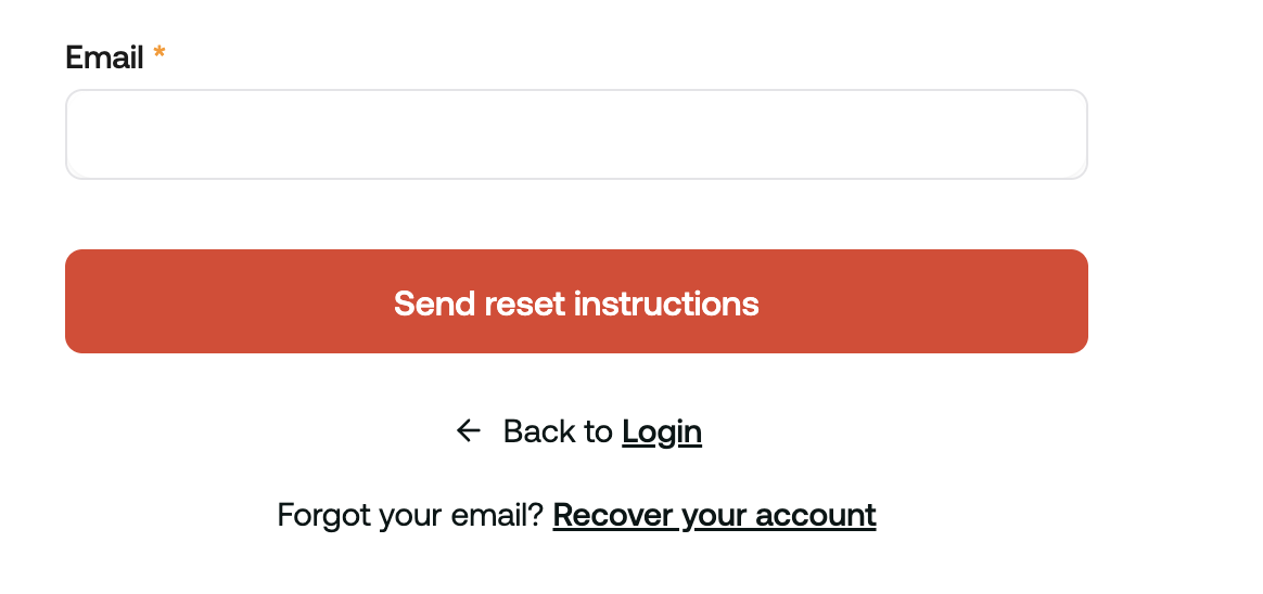 - In the Email text box, type the email address associated with your account, and then click Send reset instructions: