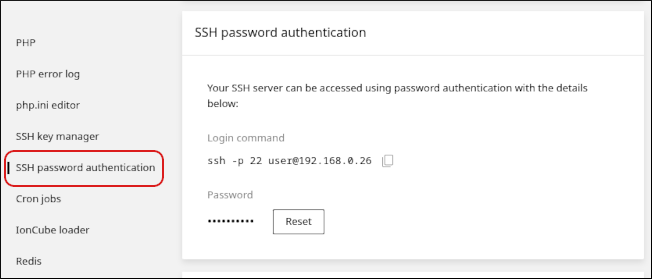 The Developer tools page appears. In the left sidebar, click SSH password authentication: