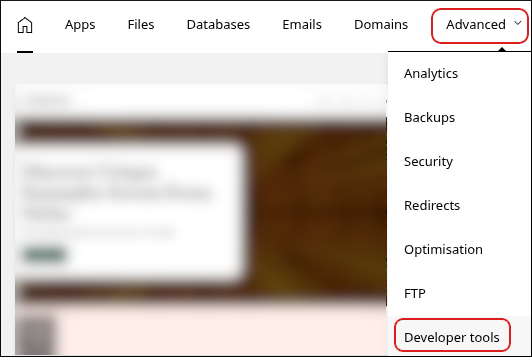 A list of tabs appears at the top of the page. Click the Advanced tab, and then click Developer tools: