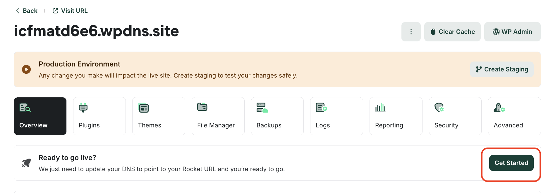In the Ready to go live? section, click Get Started:
