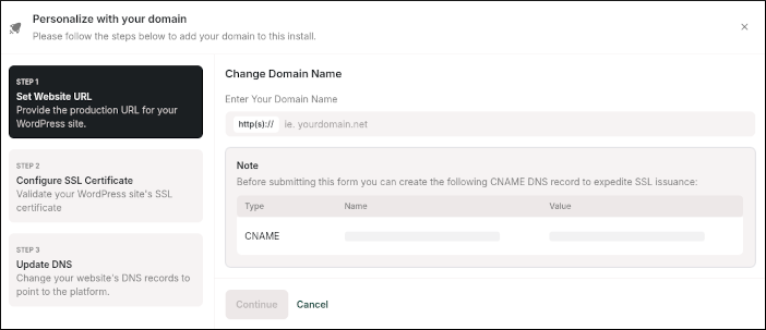 In the Change Domain Name section, type the domain you want to use with WordPress: