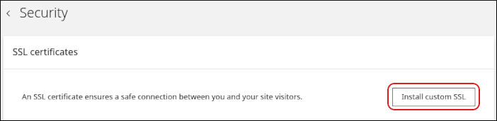The Security page appears. In the SSL certificates section, click Install custom SSL: