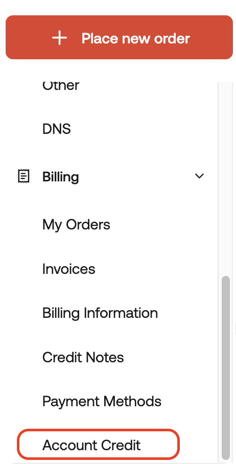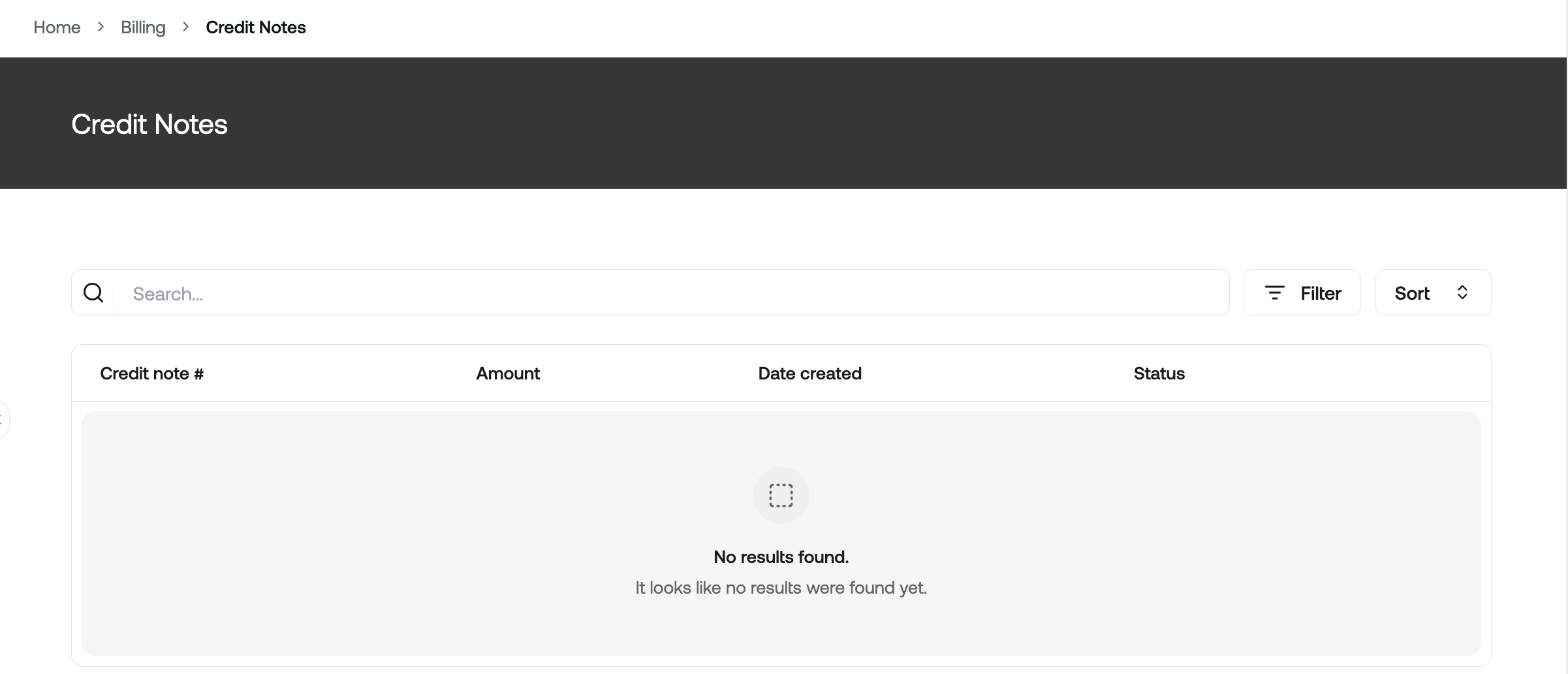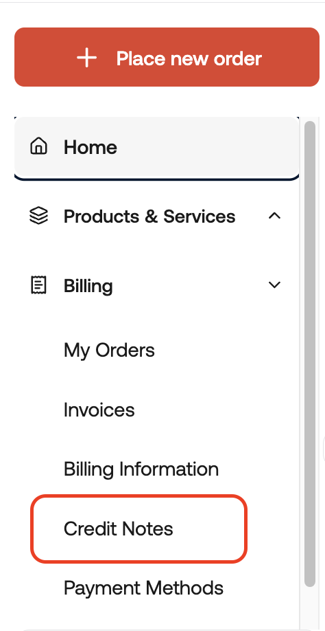 - In the left sidebar, click Billing, and then click Credit Notes: