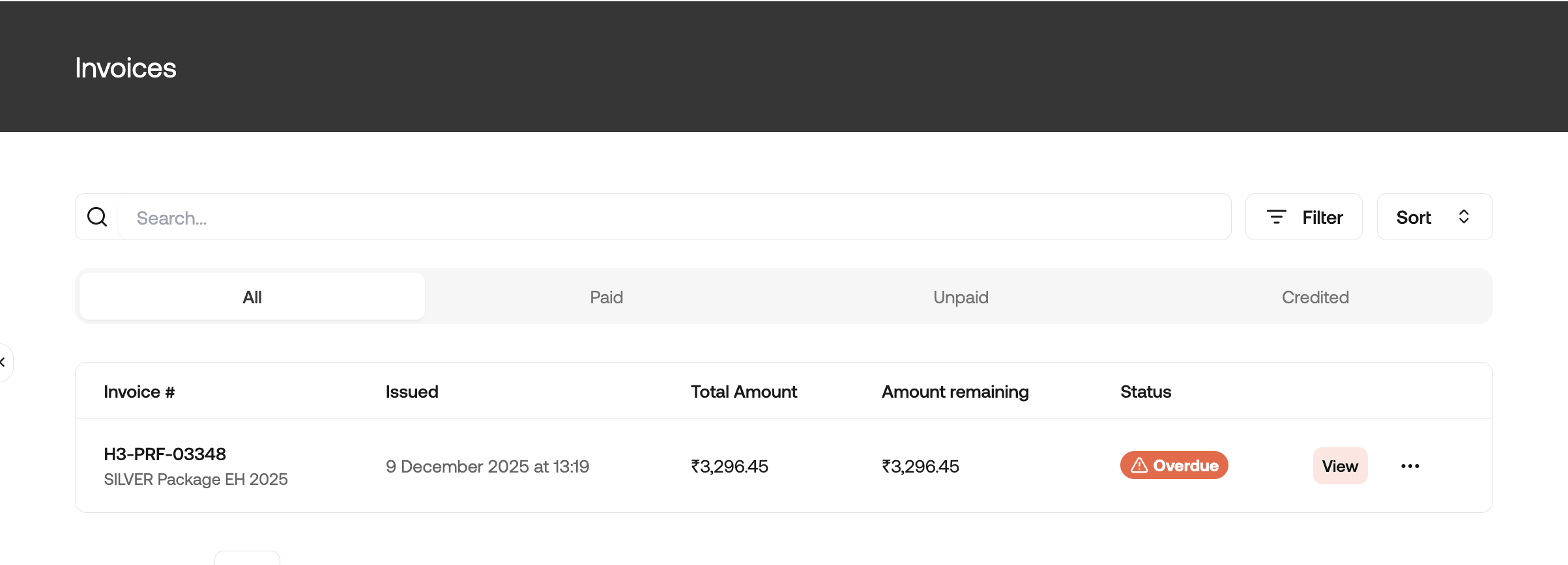 - To download a credit note, click the three-dot menu, and then click Download Credit Note.
