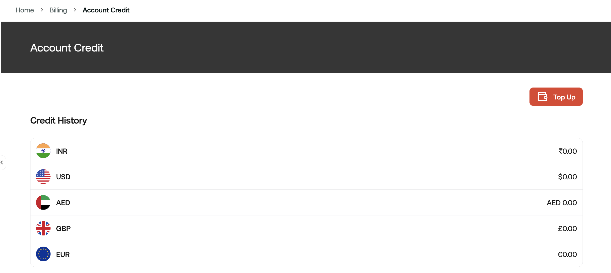 - To add credit to your account, click Top Up. You can add a credit card, debit card, or PayPal account.