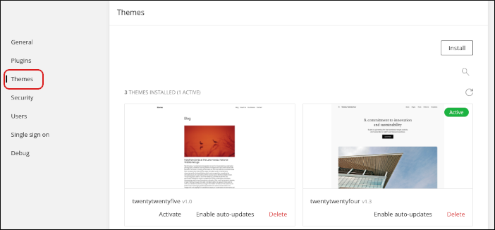 To manage your WordPress themes, in the left sidebar, click Themes:
