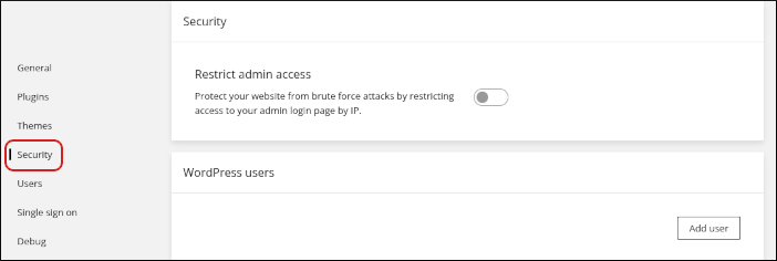 In the Security section you can restrict administrative access to your WordPress site by IP address.