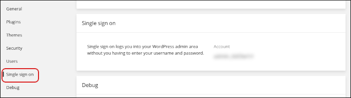 To manage single sign on settings for WordPress, in the left sidebar, click Single sign on:
