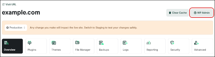 In the left sidebar, click Managed WordPress: