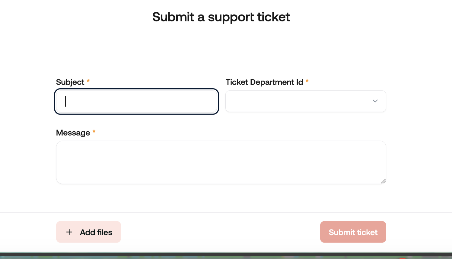 - File attachments (optional): You can attach files to the ticket. The currently supported file formats are PDF, JPG, PNG, and DOCX.